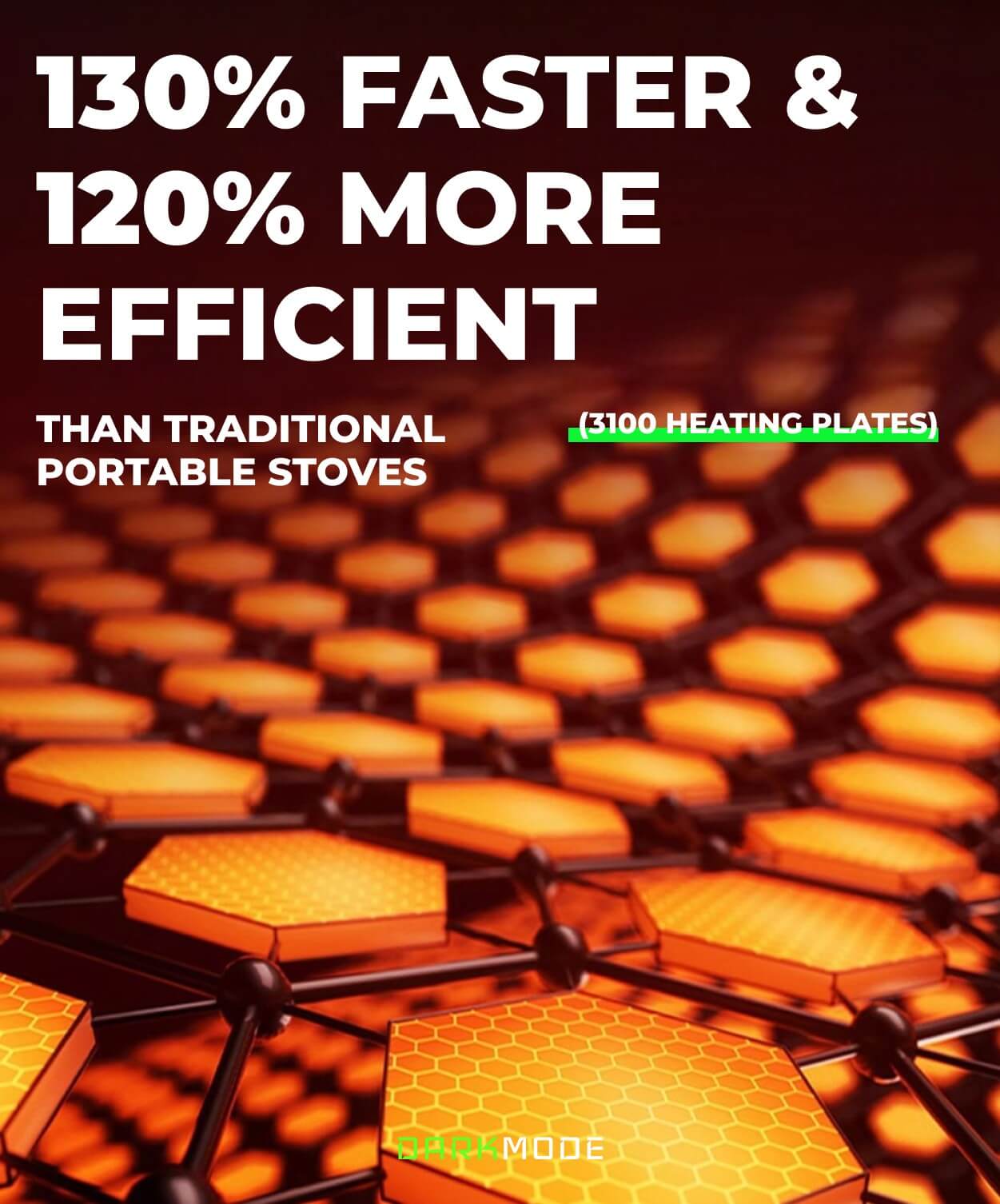 Grazie all'utilizzo di 3100 piastre riscaldanti, questo sistema è il 130% più veloce e il 120% più efficiente rispetto ai normali fornelli portatili.